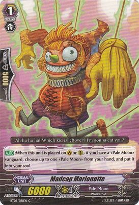 I might just have not seen many Nightmare Doll decks, so I'm unsure how creative or original this tech is, but Madcap Marionette is an interesting and useful card for Dolls, I find. On call it adds a card from hand to soul. This kind of minus for a specific soulcharge is mostly terrible in most other Pale Moon builds, but in Dolls, it has some nice synergy.